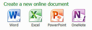 Links to Microsoft's SkyDrive versions of Word, Excel and PowerPoint (Top right)